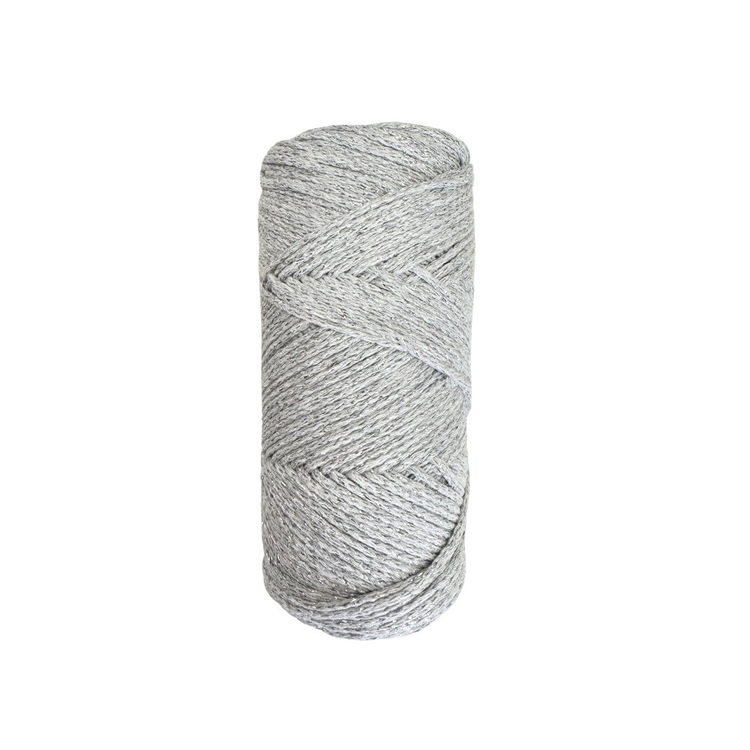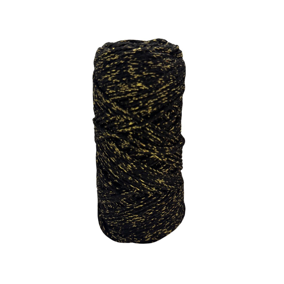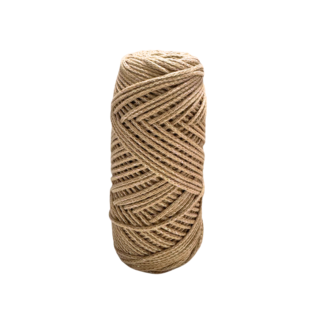 Casasol Cotton air® is the most used product for knitting or crocheting home items (rugs, cushions, baskets, bags, etc.), as its format makes it light and easy to knit with XL hooks. This eco-friendly yarn is light and frays less which makes it ideal for starting macramé. In this COTTON AIR, an extra has been added by mixing it with glitter strands that will set trends during spring-summer 2025.