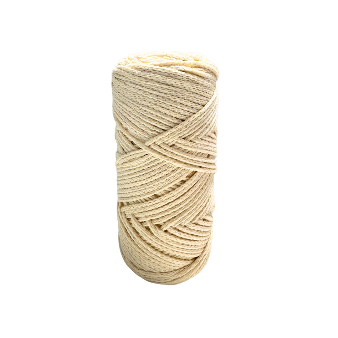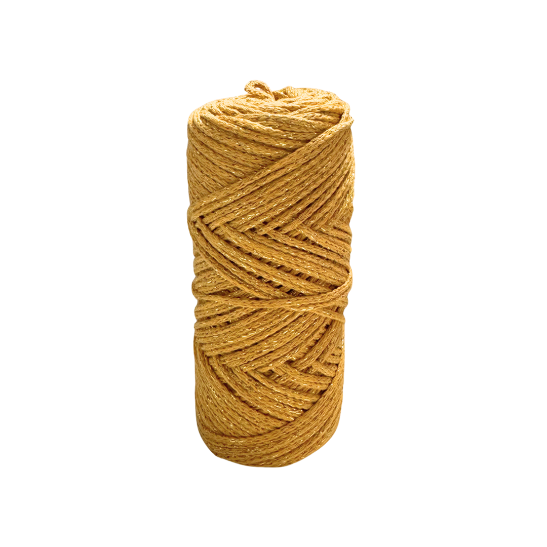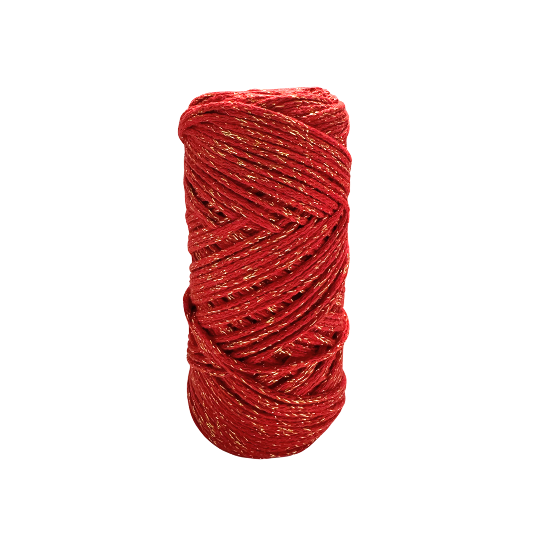 Casasol Cotton air® is the most used product for knitting or crocheting home items (rugs, cushions, baskets, bags, etc.), as its format makes it light and easy to knit with XL hooks. This eco-friendly yarn is light and frays less which makes it ideal for starting macramé. In this COTTON AIR, an extra has been added by mixing it with glitter strands that will set trends during spring-summer 2025.