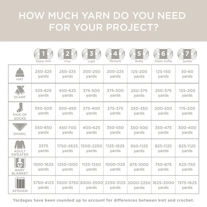 | Yarn Weight Grosor del Hilo | 1 Super Fine / Stocking 1 Super Fino / Calcetin |